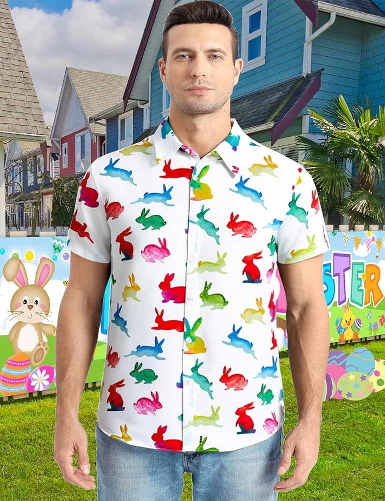 - Mens Easter button down shirt, perfect for Easter egg hunts and Easter crafts with the family. A great gift for your family members and your friends