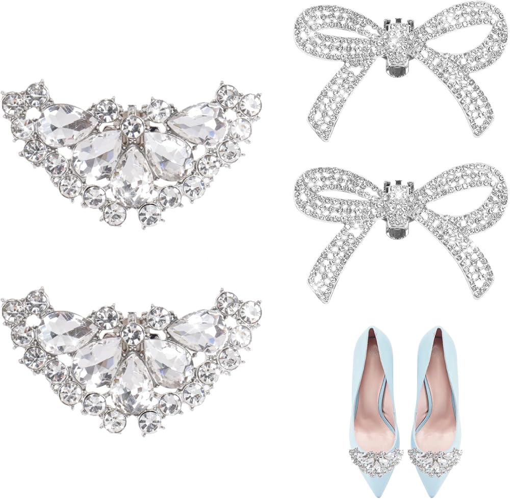 Enhance your footwear instantly with this 2-pair set of rhinestone shoe decorations clips, designed to add a sophisticated and stylish touch. Featuring elegant bows and classic square shapes, these clips transform any pair of shoes.