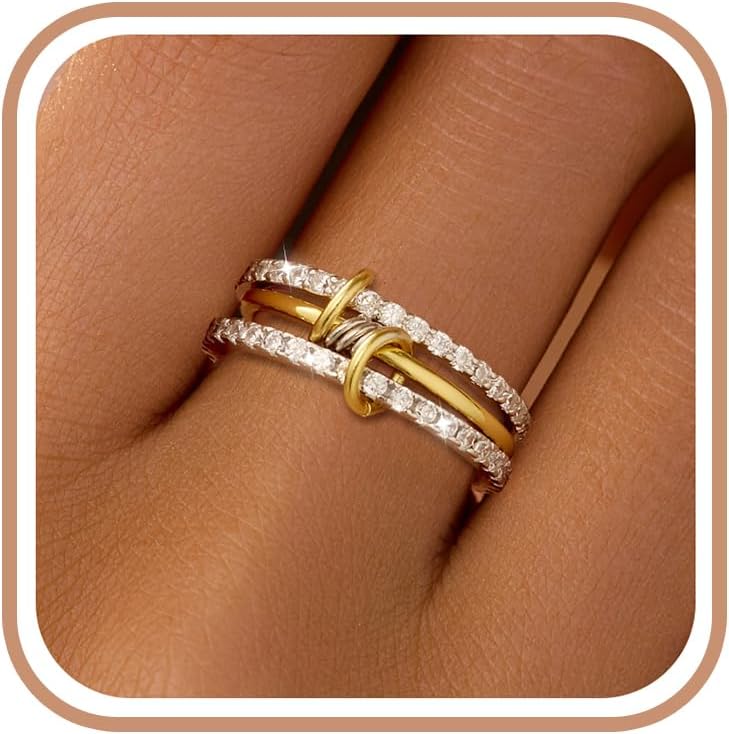 Three In One Interlocked Spinelli Rings - This interconnected circle represents unbreakable bond. The triple interlocking rolling ring is a symbol of unity, endless love passion and loyalty, it is commitment ring to beloved. 3 in 1 rings show stackable trendy outlook