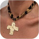 This statement necklace is a must-have for anyone who loves bold, eye-catching jewelry. The gold-tone cross pendant, paired with the hammered texture and unique design, makes it a standout piece in any jewelry collection. Whether you're attending a special event or just want to add some flair to your everyday wear, this necklace will elevate your style.