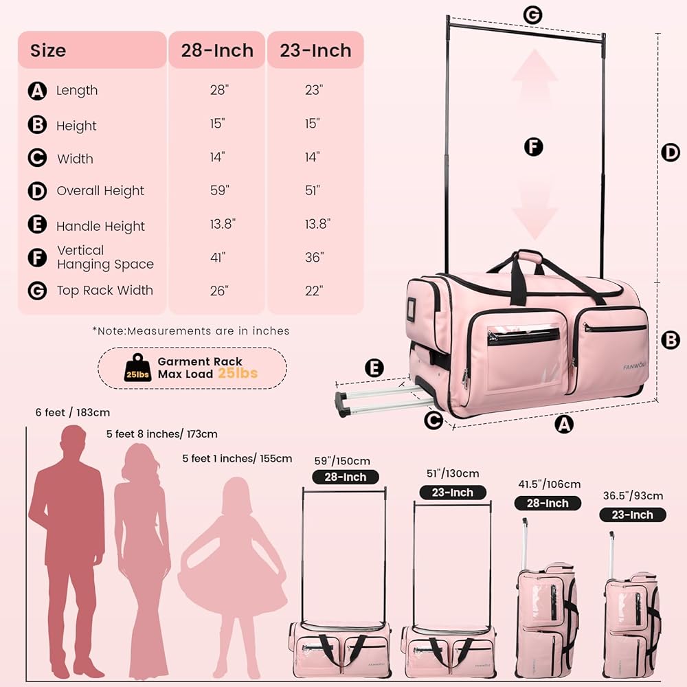 Fanwoli 23" Dance Bag with Garment Rack | Upgraded Stable System & Fabric | More Lightweight & Wear-Resistant | Ideal Competition Duffle Bag for Dancers Livestreamer Athletes