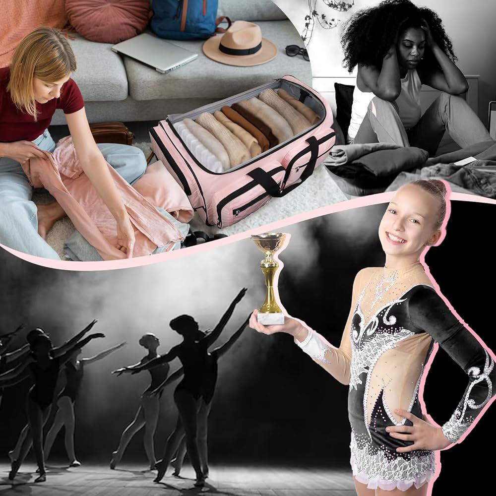 LIGHTWEIGHT FOR TRAVEL: 23" duffle bag only weight 9 pounds, which can pack more weight than other dance bags without being charged for overweight. You have a larger quota to carry other spare items to cope with unexpected situations. Champions are always won by those who are more prepared. Not only a professional dance competition bag for dancer, but also a portable wardrobe for athletes, film performers, livestreamer and others who need to change multiple sets of clothing during work