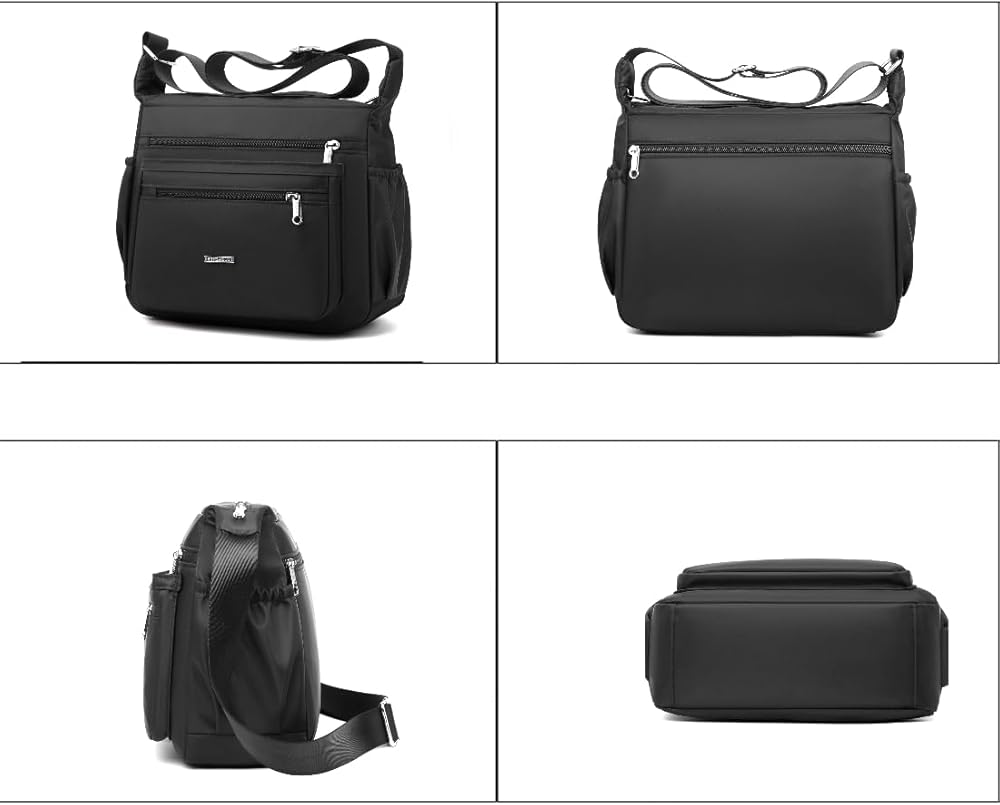 【Purse with Pockets and Compartments】This bag has 10 pockets and compartments. Exterior: 2 side elastic pockets for water bottle, 3 front zipped pockets, 1 back zipper pocket; Interior: 1 zipper pockets and two small pouches.