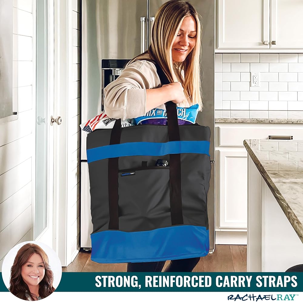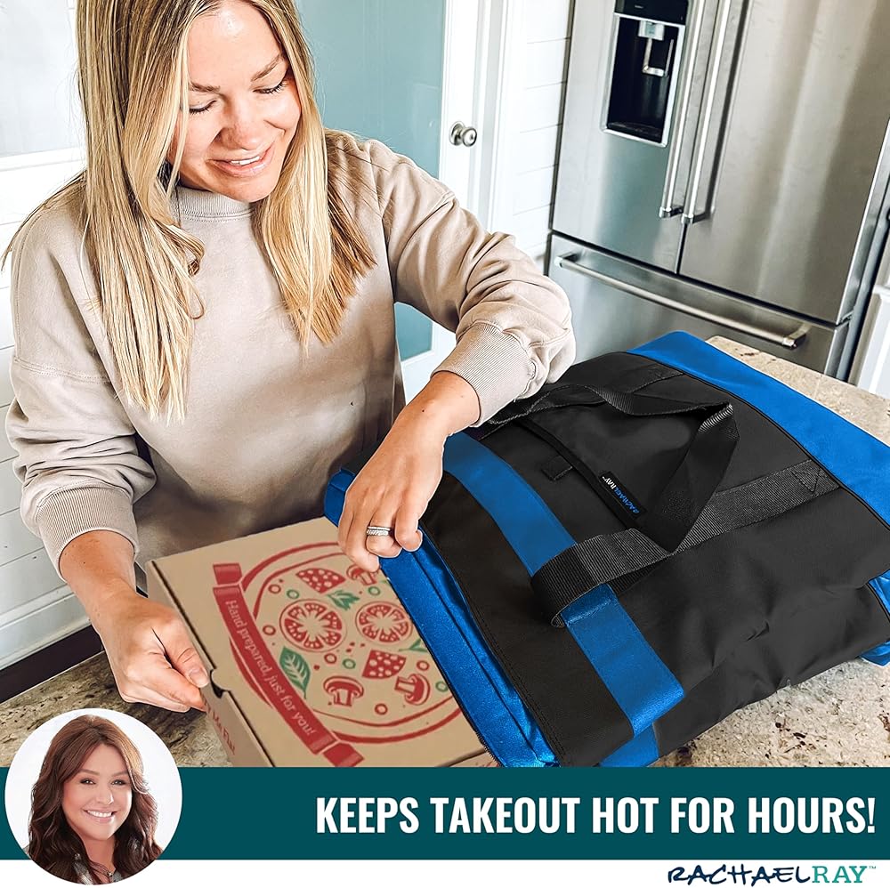 FEATURES - A large insulated tote, 16.5” x 8” x 17.5” offers plenty of room for groceries, beverages, takeout and more. A zippered closure, front pocket, and a leak resistant, collapsible design. Adjust the bag straps to flat carry dishes anywhere!