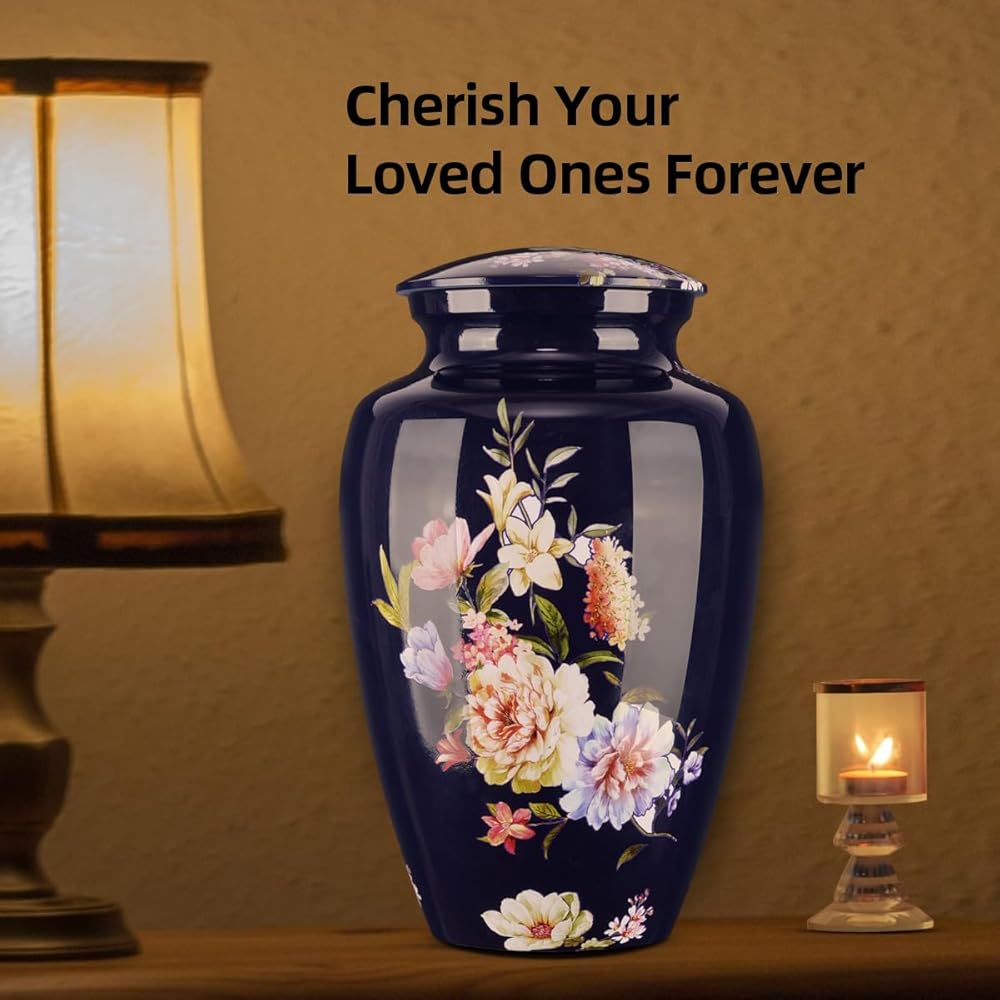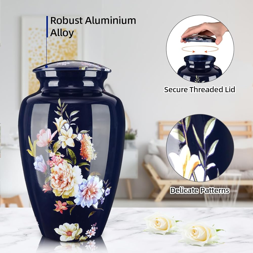 Elegant and Durable: Immerse yourself in the intricate detailing of our top-quality aluminum urn, a comforting keepsake with lasting quality.