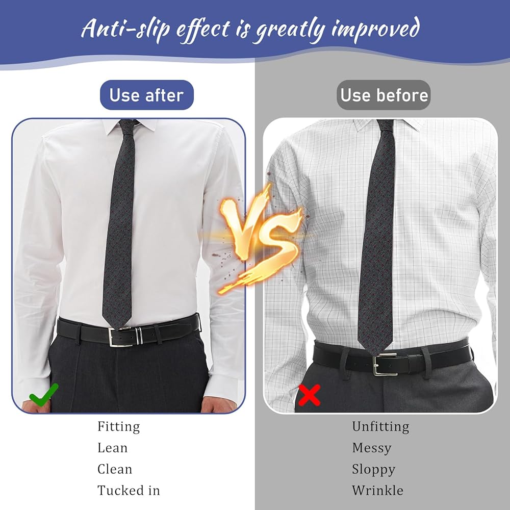【Keep your shirt flat】When you wear a suit, you may encounter the problem of shirt shifting. The keep shirt tucked in men are connected to a button on the shirt and wrapped around the waist. The corset stays ensure that the shirt always stays flat, and the shirt straps men allow you to avoid repeatedly adjusting your clothes.