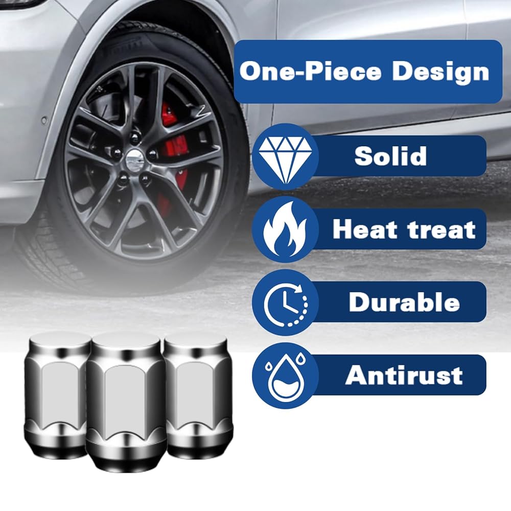 One-Piece Design:The one-piece 1/2-20 lug nut design surpasses traditional two-piece nuts by effectively preventing cracking and ensuring driving safety through its tight, precision-engineered fit between threads and bolts.