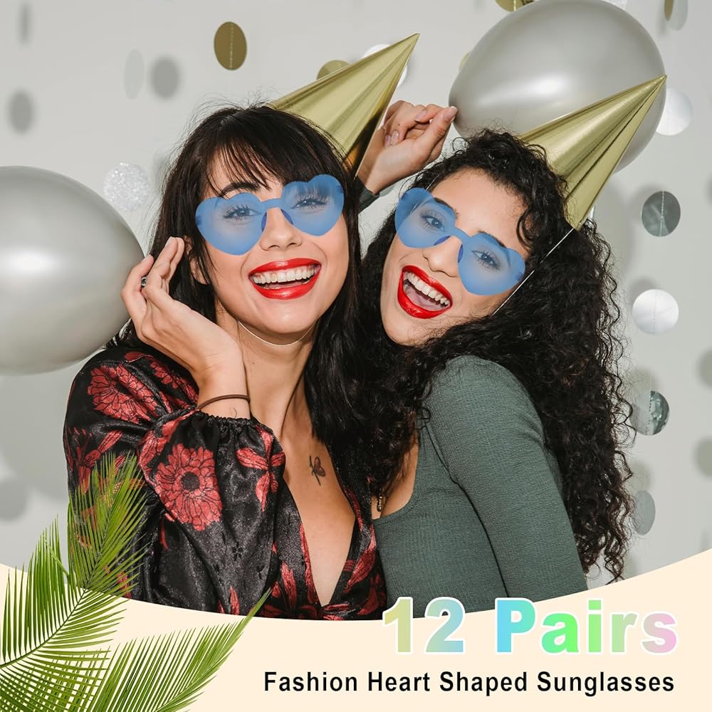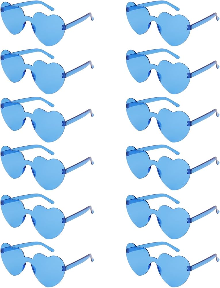 Heart Sunglasses Set: You will receive 12 pairs of colored heart shaped rimless sunglasses in different colors. Our cute heart glasses are perfect for parties and other occasions. These funny glasses are enough to match your different outfits and show your style.