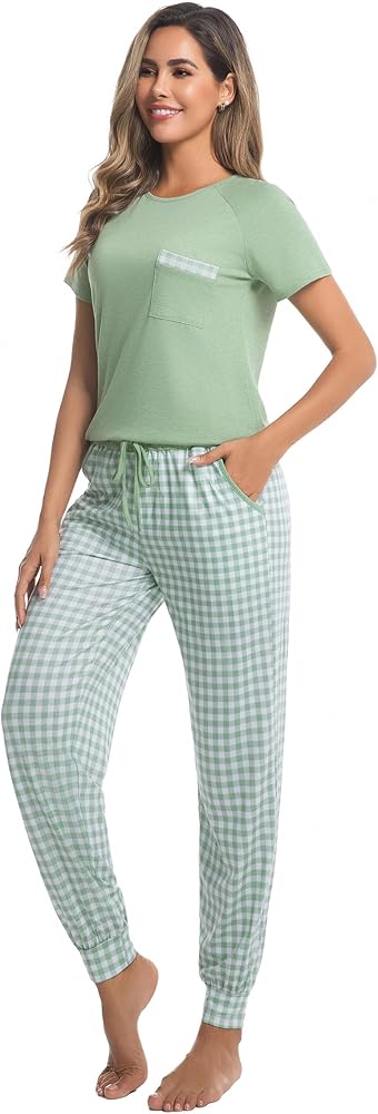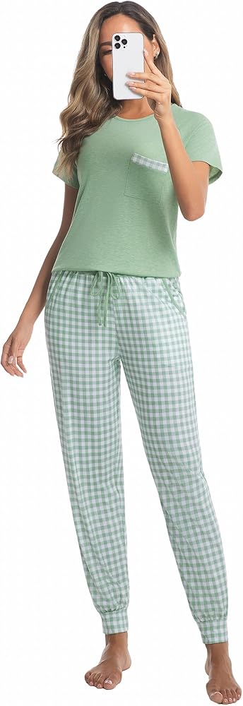 Pjs Pants: Plaid Pajama pants with 2 pockets to store your belongings, and drawstring waistband fits perfectly on all body shapes; Moreover, elastic ankles keep the bottoms from sliding up during sleeping