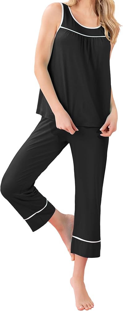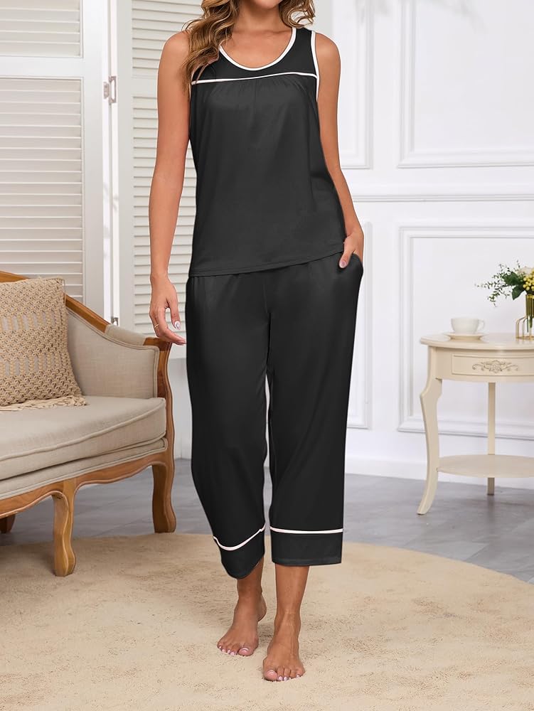 Material:The tank sleepwear set is made of soft, lightweight and breathable fabric, so this capri pajama set can keep you comfy and relaxed all the time.Summer ladies' wardrobe essentials