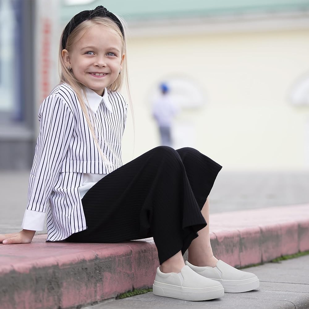 【Easy On & Off】 Designed with elastic stretch technology, these slip-on sneakers allow quick and hassle-free wear, perfect for active girls who are always on the go.