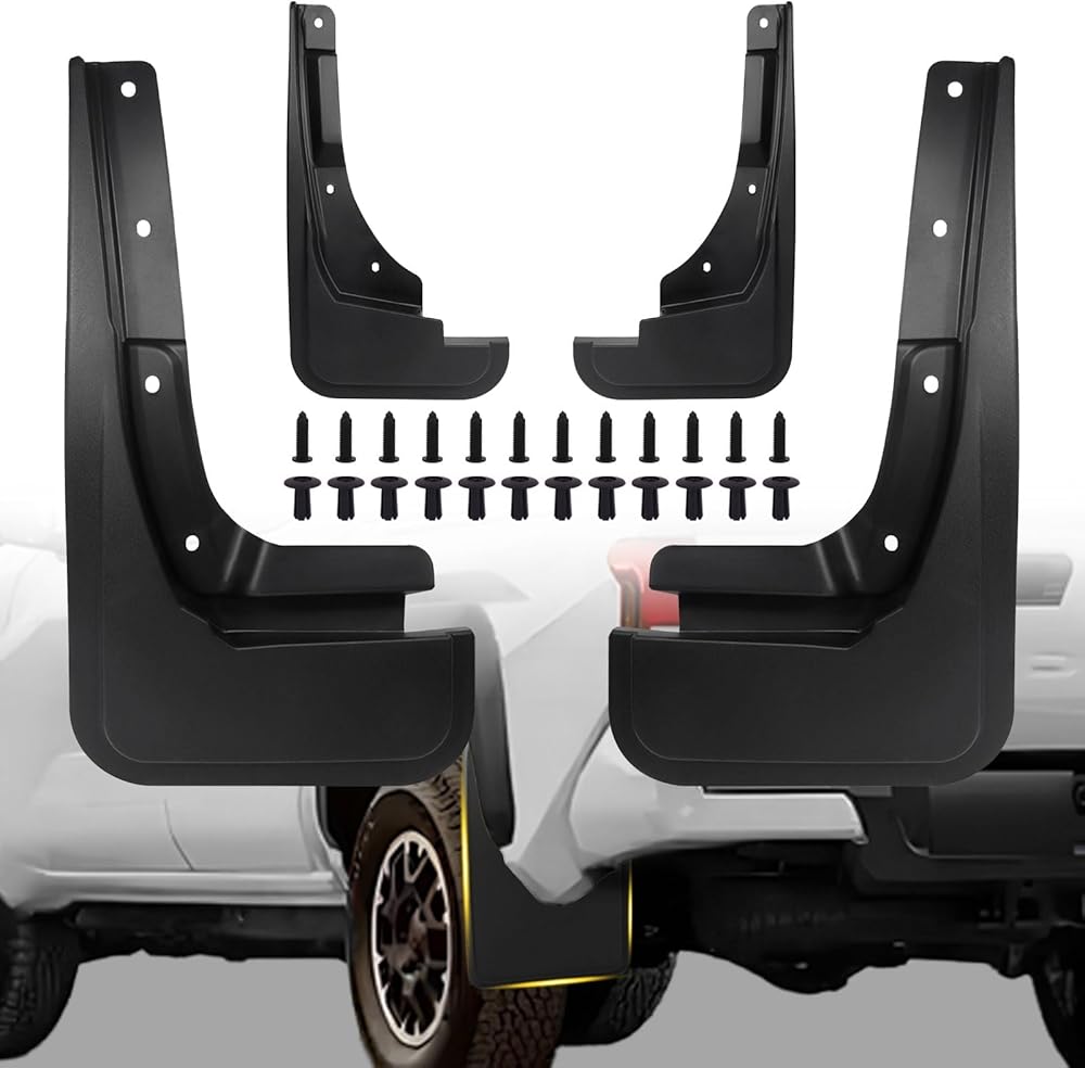 Compatibility: These mud flaps are compatible with 2024 2025 Toyota Tacoma models. They are customized to match the original 2024 2025 Toyota Tacoma accessories, ensuring perfect compatibility with your vehicle. To ensure the right fit, please confirm your model before placing an order.