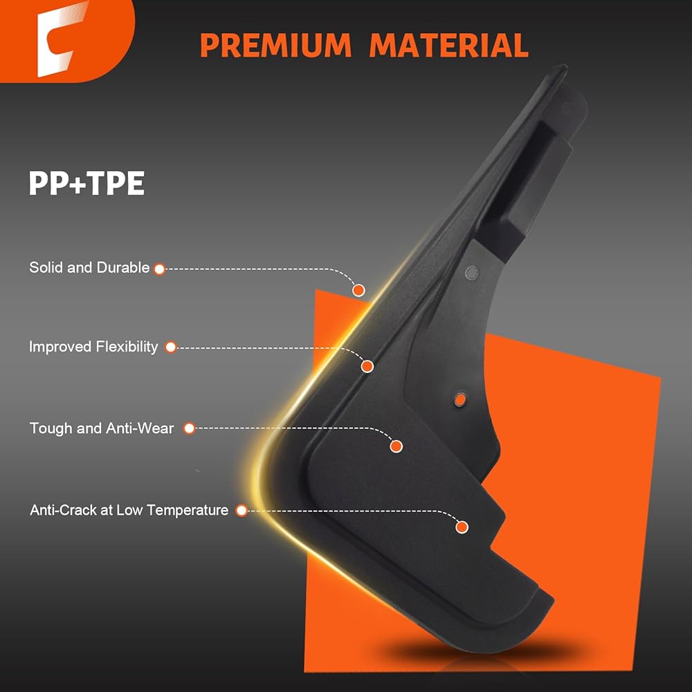 High Durability and Performance: Made from strong TPE material, these mud flaps for trucks are waterproof and rust-resistant, making them safer and more durable. They maintain reliable flexibility under various temperature conditions. These mud guards help resist impact damage and minimize the risk of cracking or deformation, providing stability on different road surfaces and in various weather conditions.