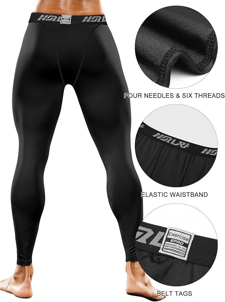These men's compression leggings are designed with high stretch material, 85% polyester, 15% spandex. The men's compression leggings are designed with a high compression design that wicks away moisture and keeps you cool and dry, preventing your clothes from sticking to your body and ensuring you stay comfortable throughout your workout