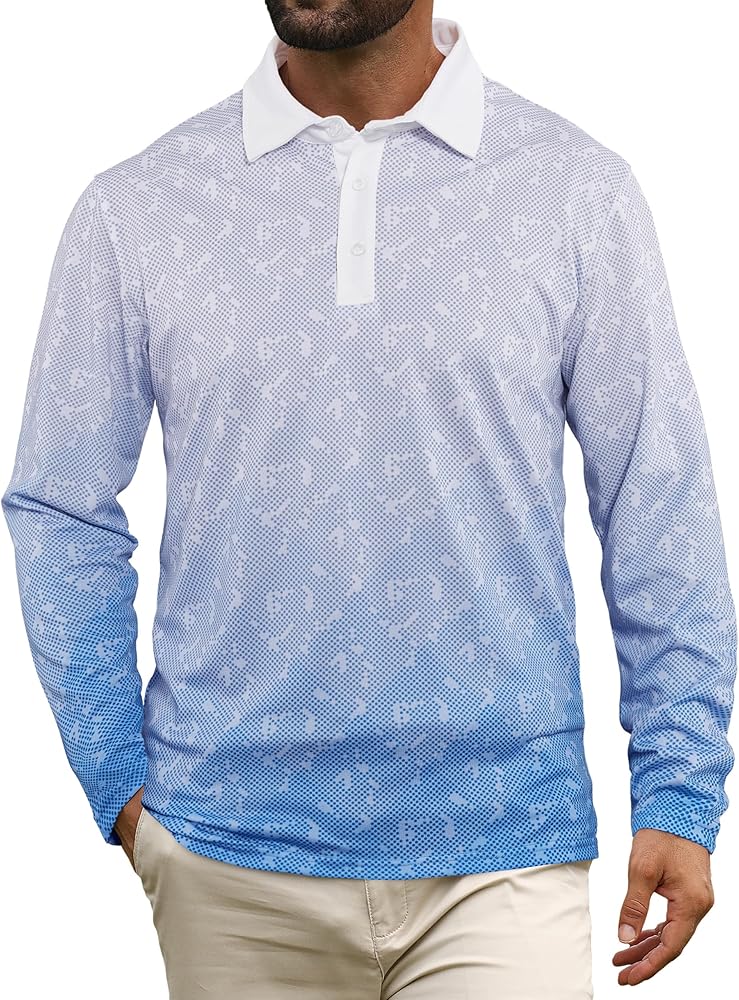 COMFORTABLE FABRIC --- Our mens long sleeve polo shirts is made of 100% polyester, dry fit, moisture-wicking, soft, lightweight, and elastic. With breathable and quick-drying properties, it's perfect for all-day wear and won't fade over time.