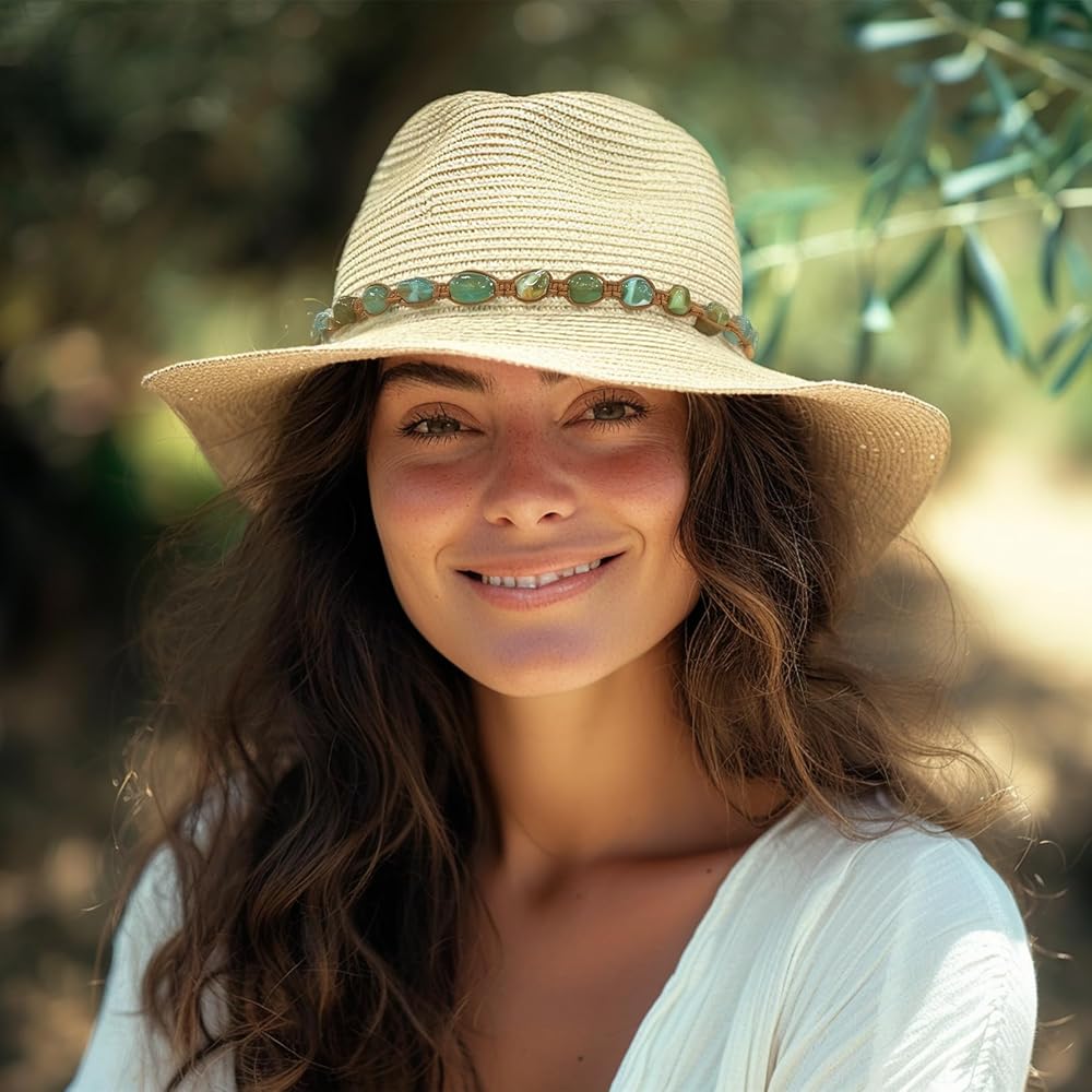 【Versatile】Beaded turquoise braided hat band are suitable for all kinds of hats, such as sun hats, beach hat, straw hats, cowboy hats, cowgirl hats, western hats, felt hats, fedora hats
