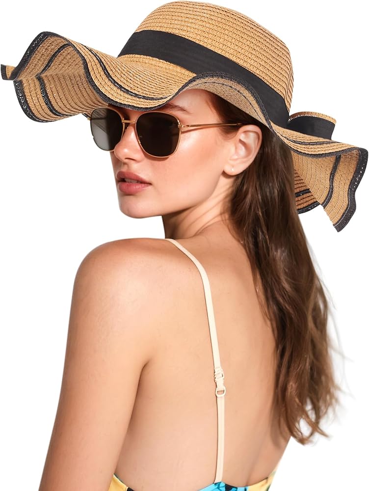 🌈Packable and Foldable Beach Sun Hats for Vacations: With high-quality materials and skilled craftsmanship, the women's straw hat can be folded up or down in various shapes and won't break. The sun hats are portable and to be easily carried inside your bag and are convenient for vacations. They are perfect for gardening, the beach, the pool, the park, camping, hiking, church functions, race day events, etc.