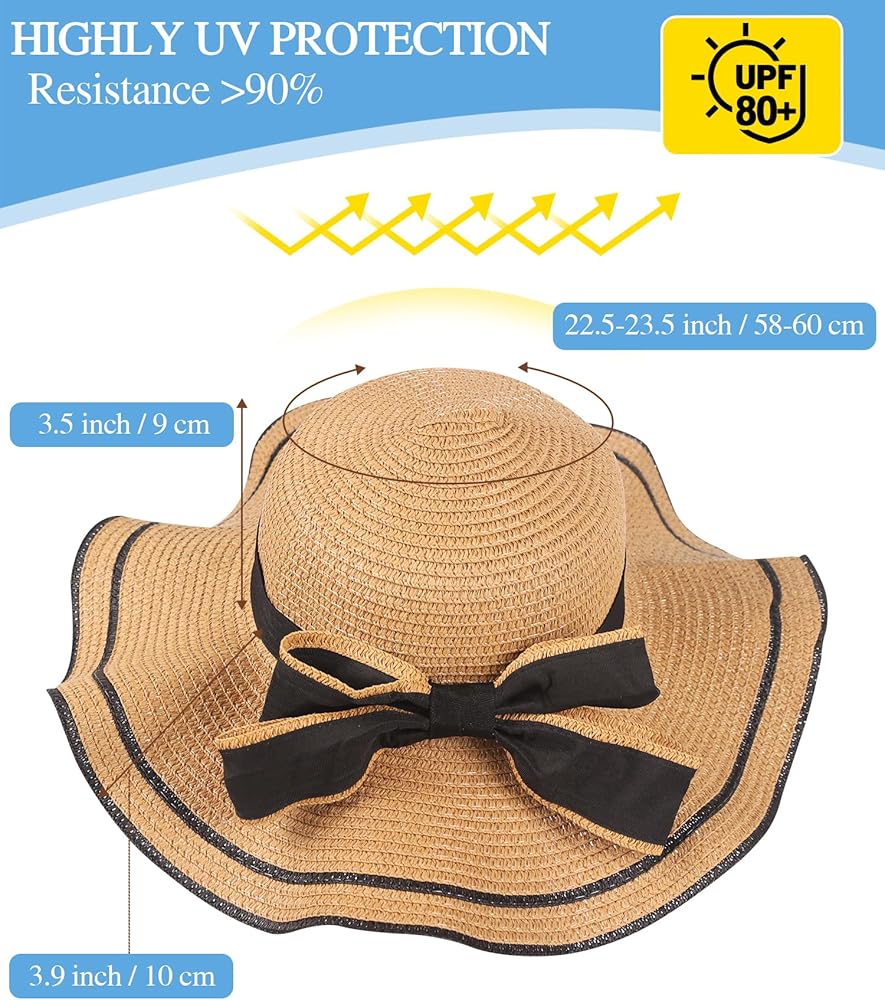 🎀Stylish Summer Hats& Perfect Gift Idea: The straw sun hat has a classic shape, elegant bowknot designs, and will top you off in style. It is perfect for vacation, beach, shopping, walking, fishing, camping, hunting, gardening, etc. It can also go with multi-style clothing. Also, it will be an ideal gift for your family and friends.