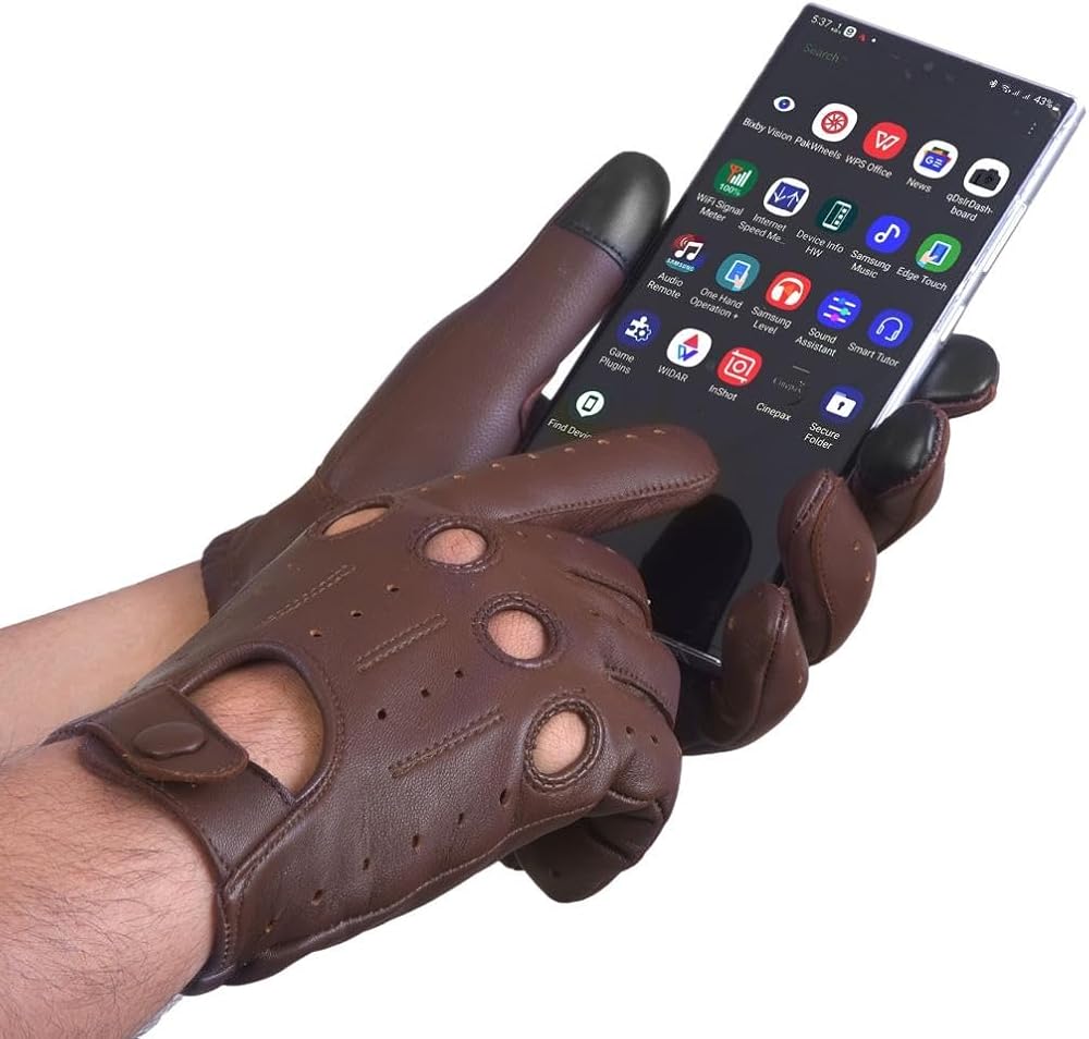 ALL-IN-ONE GLOVES: Stay connected while on the road with these Driving gloves that let you easily operate your smartphone, thanks to their touchscreen compatibility. These leather gloves are designed for cold weather and provide excellent insulation to keep your hands warm during chilly rides. They're the ideal accessory for Driving enthusiasts and drivers in Driving.