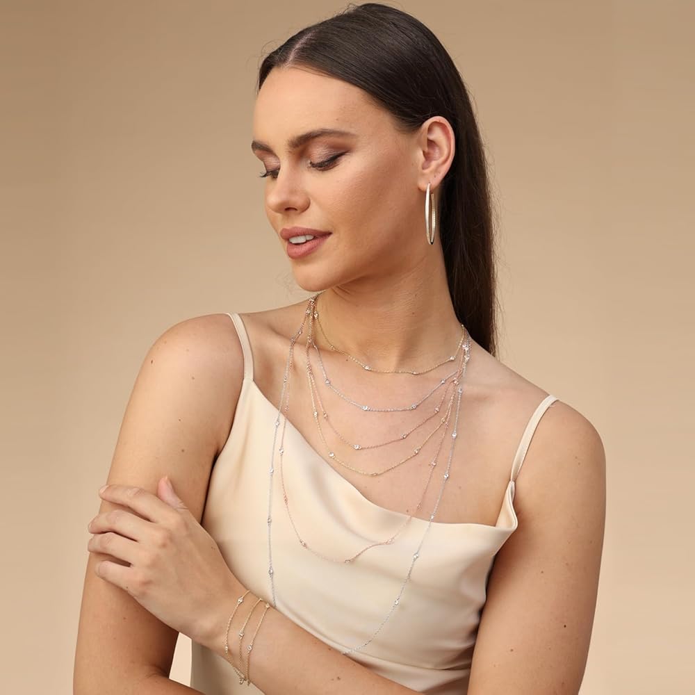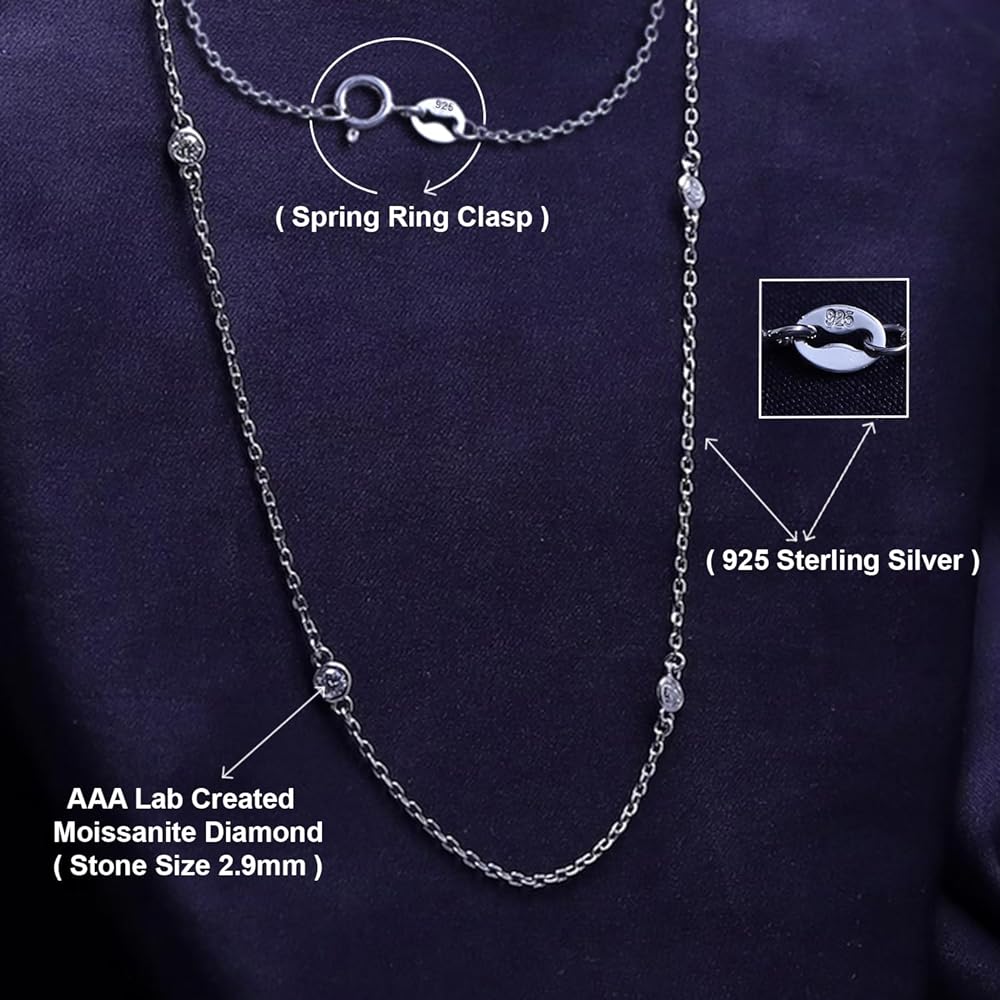 Jewelry has the power to be this one little thing that can make you feel unique, 2.9MM Round Cut Lab Created Moissanite Bezel Set Yard Station Chain Necklace In 14k Gold Over Sterling Silver Jewelry 16'' To 36" Chain (G-H Color, 0.60 Cttw To 1.60 Cttw). Absolutely a great gift to express your love for your mother, girlfriend, fiancee, wife, valentine, family or just a friend,etc. Great gifts on Mother 's Day, Wedding, Anniversary day, Valentine's Day or Christmas Day