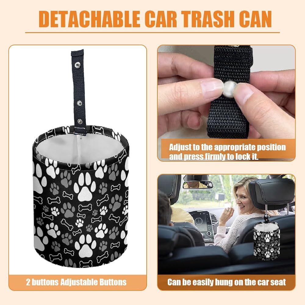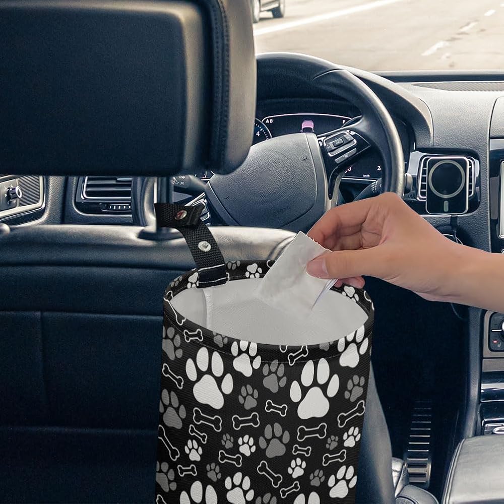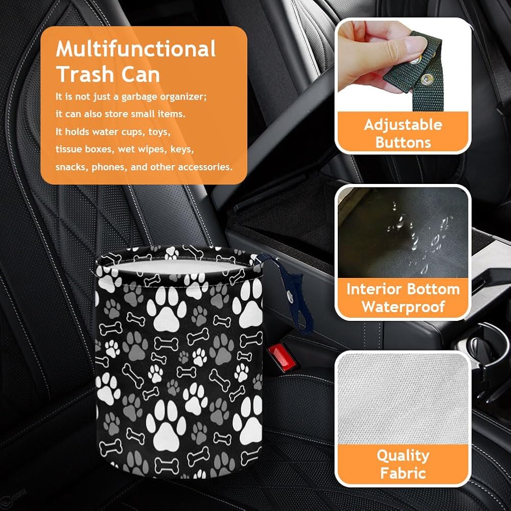 Unique Exterior Design: PThis paw print bone car rubbish bin, not only can hold all the rubbish, will also use the cute and funny look, so that every time you throw rubbish is like playing interactive games with your beloved pets, easy to keep the car neat and tidy, open a new way of travelling with love
