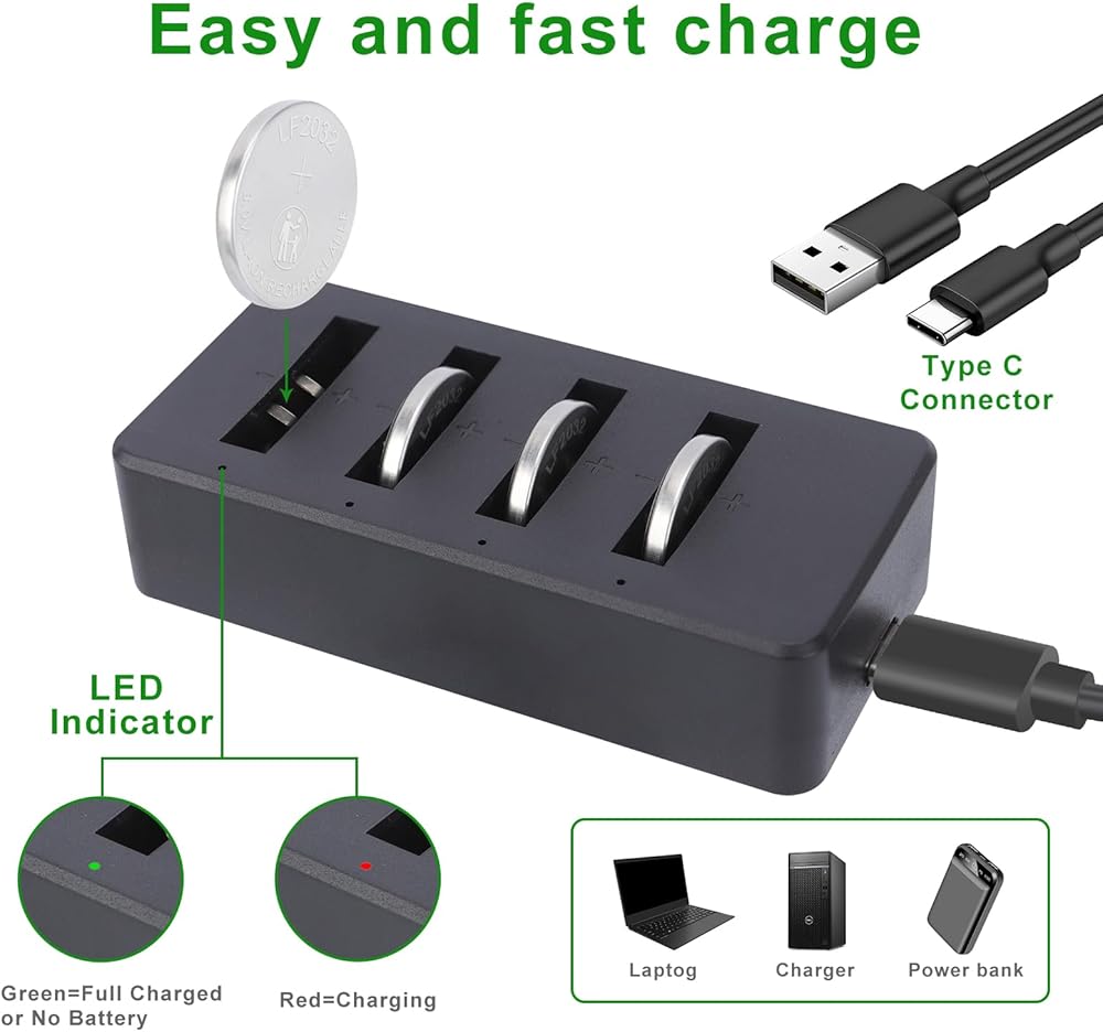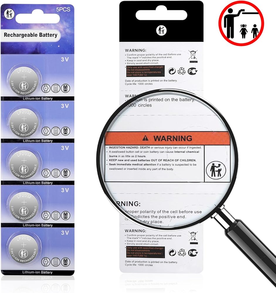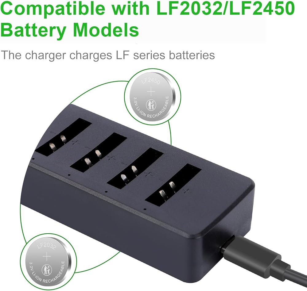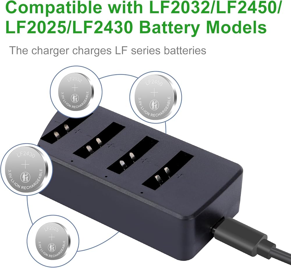 - 🔋【BASIC INFO】Voltage: 3V; Capacity: 45mAh; Please charge the battery with our dedicated charger. Packing included: LF2032 Battery X 5, Battery Charger x 1.