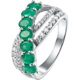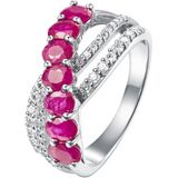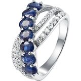 STYLISH: This piece features a unique crossover highway ring style that focuses on the sapphire gemstones, while also showcasing the brilliance of its supporting white zircon stones.