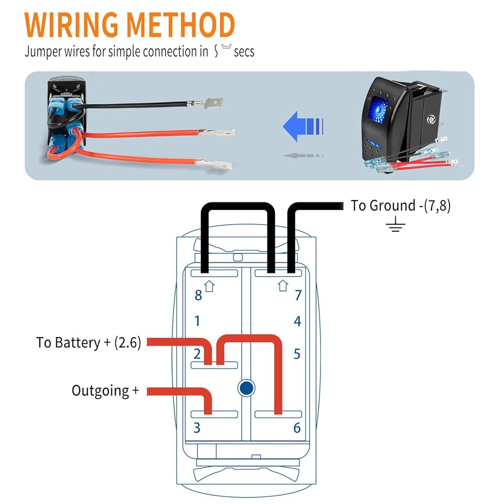 【SIMPLE INSTALLATION】 the rocker switch panel can be replaced with any defective 5 pin spst switches.5 pin on-off toggle switch panel with spst design (single pole single throw)gang switch panel come along with a set of jumper wires, simple to install, built-in two premium leds emits soft light to illuminate the patterns, easy for you to find the switch in the dark.can easily turn on/off the lights.