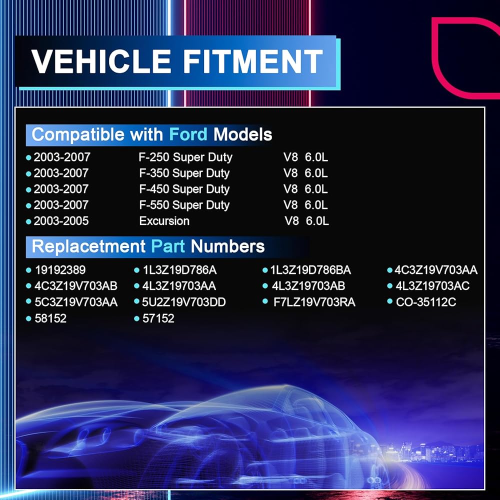 ❄️【Vehicle Fitment】- AC Compressor Compatible with1999-2007 Ford F-250/F-350/F-450/F-550/ F-53 Motorhome Chassis Super Duty V1 6.8L; 1997-2005 Ford F-150/ F-250/ Excursion/F-250 Super Duty/F-350 Super Duty V8 5.4L; 2003-2007 Ford F-250/F-350/F-450/F-550/Excursion Super Duty V8 6.0L; 1997-2001 Ford F-150/F-250 V8 4.6LPlease see photos and compare to your original compressor prior to ordering!