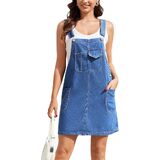Multiple Pockets Design: Featuring convenient pockets on the chest and both sides, this denim overall dress not only adds practicality for carrying small essentials but also enhances the overall visual appeal with added layers.
