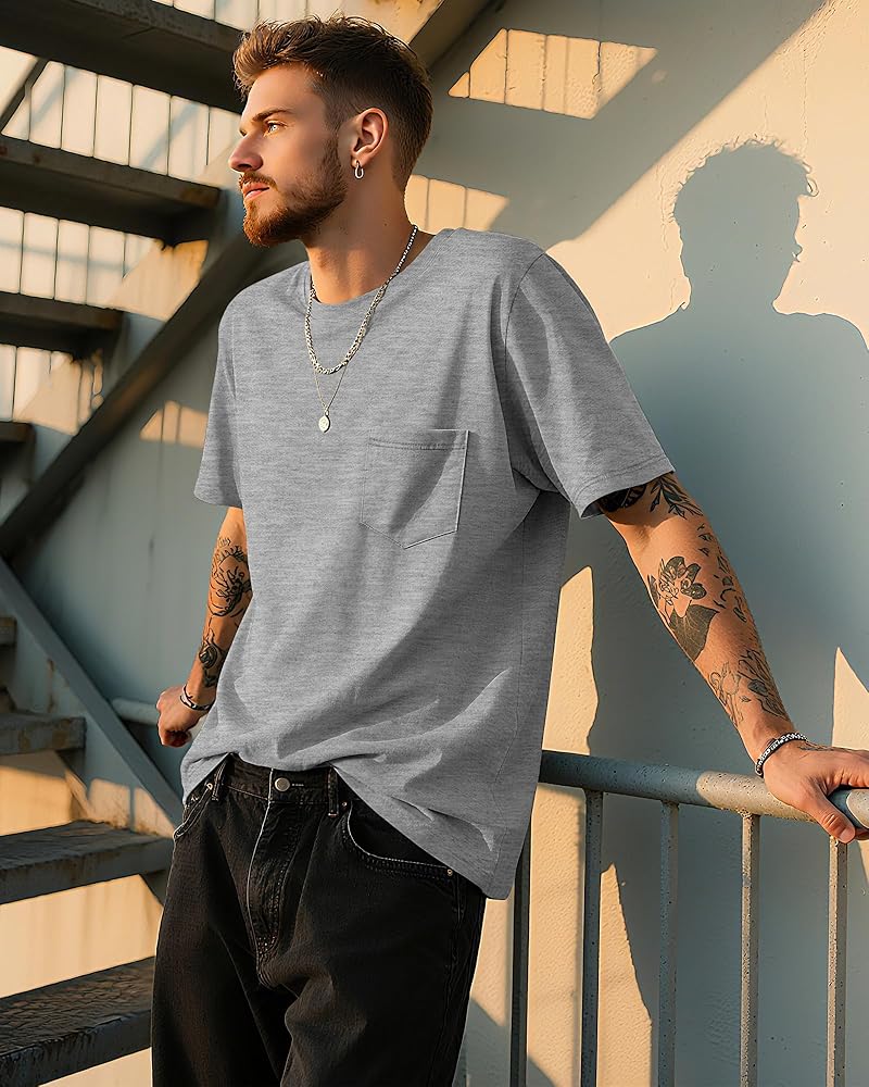 Men's big and tall cotton tshirt fabric is soft. It has the function of moisture absorption and sweating, and it is comfortable to wear in summer.