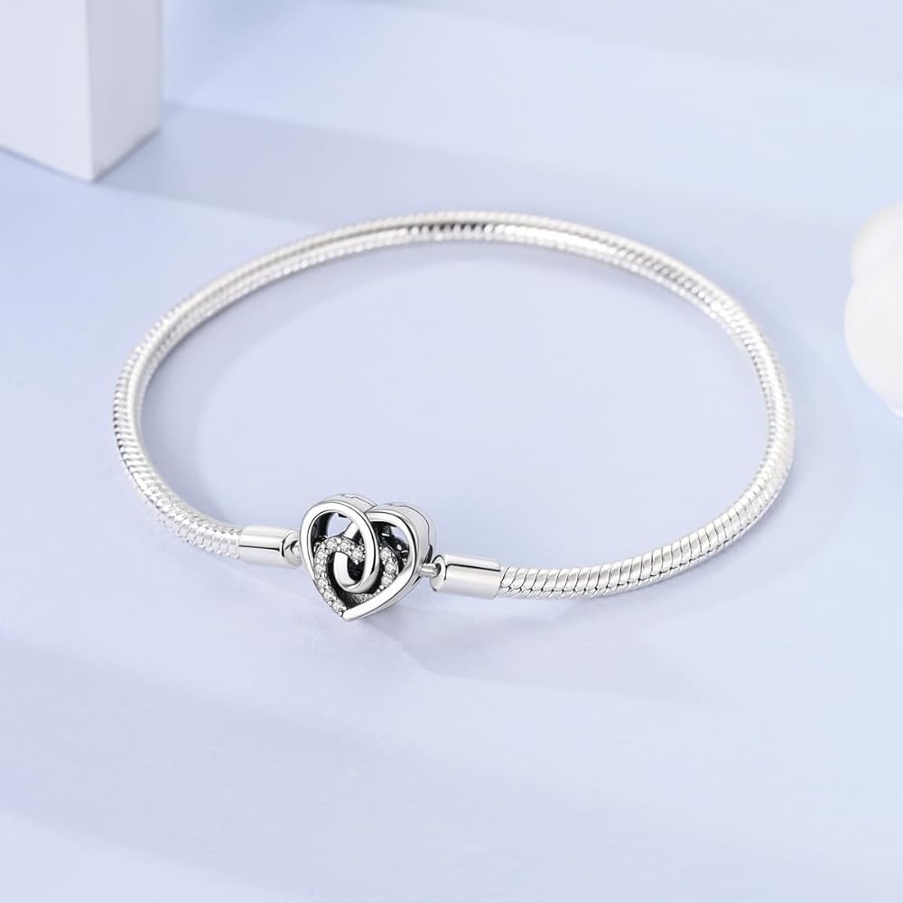 [Compatible with Most Bracelet Charms]: This snake chain bracelet is perfect for your Moments charms. This sterling silver snake chain bracelet looks stunning on its own but better adorned with your favorite charms and clips