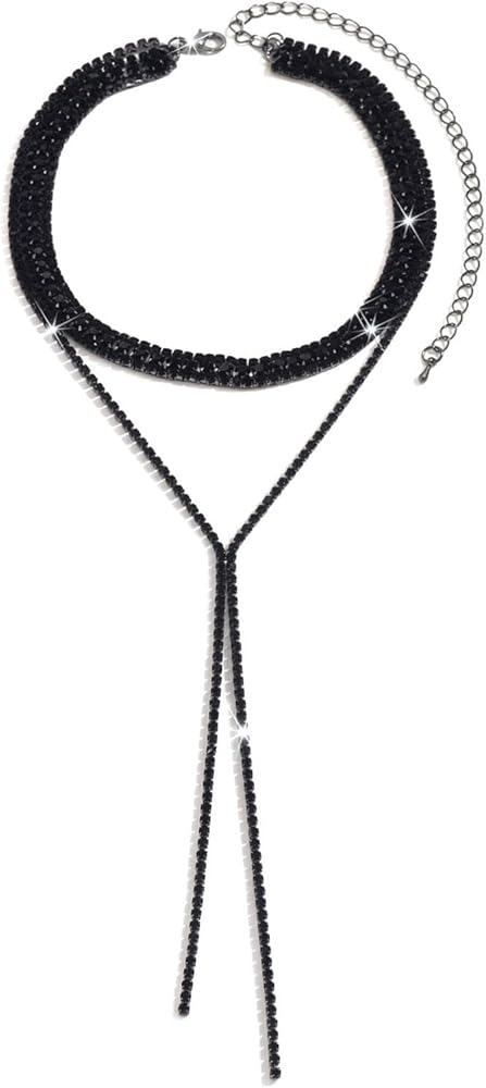 Rhinestone Choker Necklace for Women Silver Black Rhinestone Layered Y Neckalces Layered Choker Neckalces Dainty Fashion Long Tassel Neckalce for Women