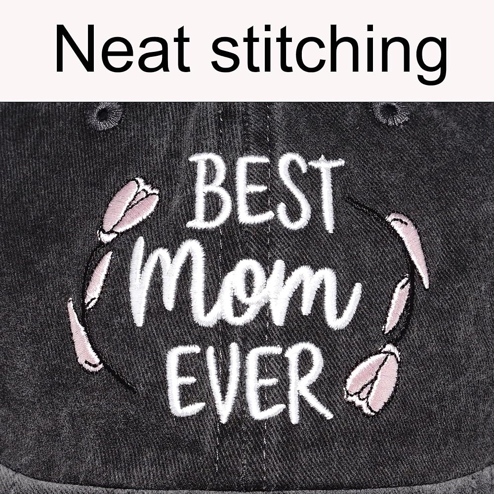 PERFECT GIFT: This "Best Mom Ever" hat makes a thoughtful gift for any mother with its sweet embroidered message on washed cotton twill.