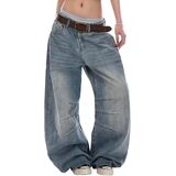 【 Fashion 】 This aesthetic barrel jeans features a very fashionable street style, and its unique design will make you more charming