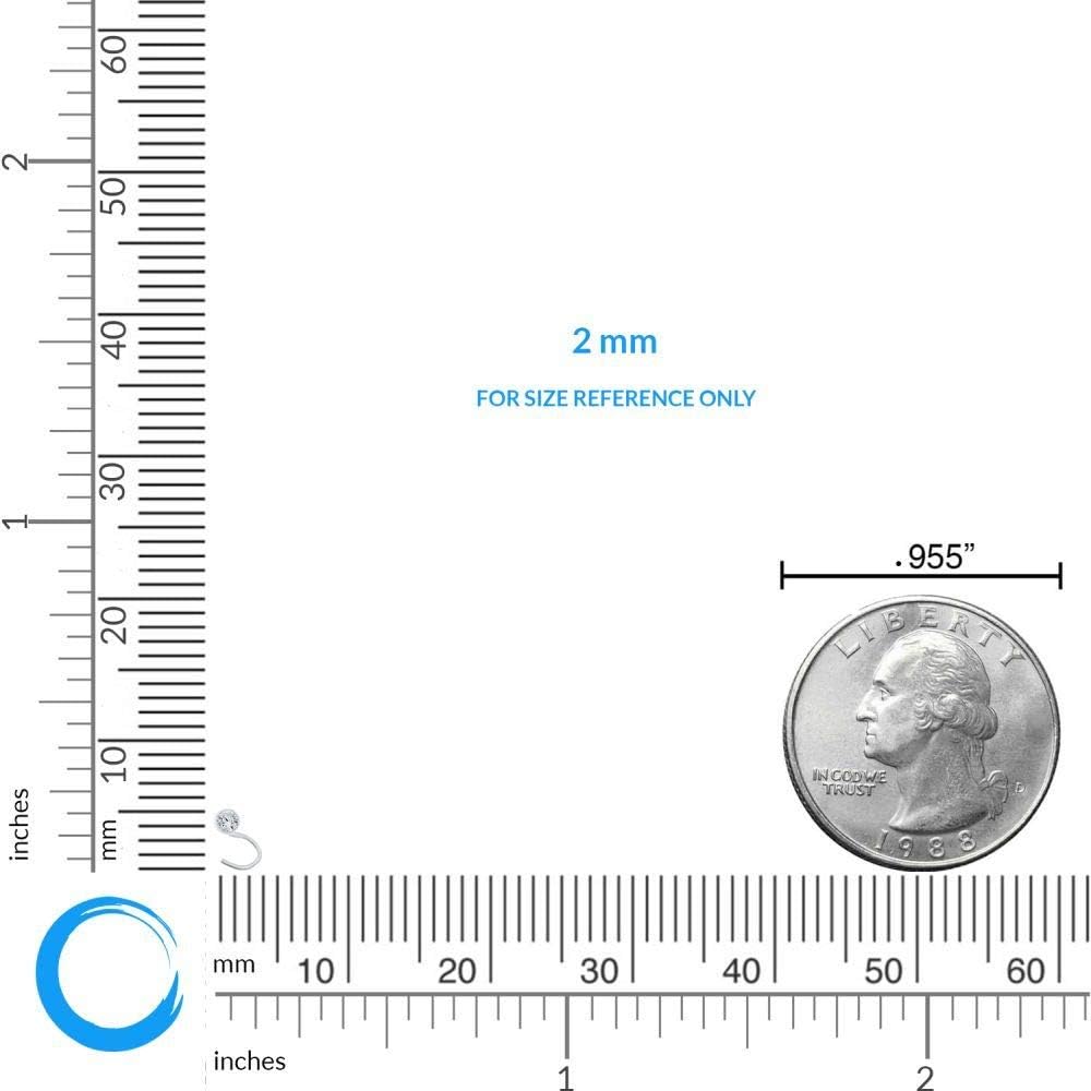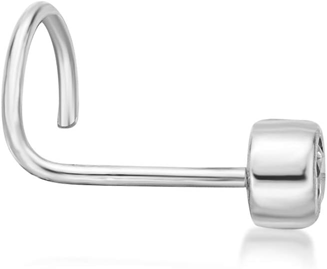 Chic sophistication: The 22 gauge curved screw nose stud is made from 14k white gold and features a stunning 2mm cubic zirconia in a bezel setting. Perfect for both women and men, it adds a touch of elegance to any look and ensures all-day comfort