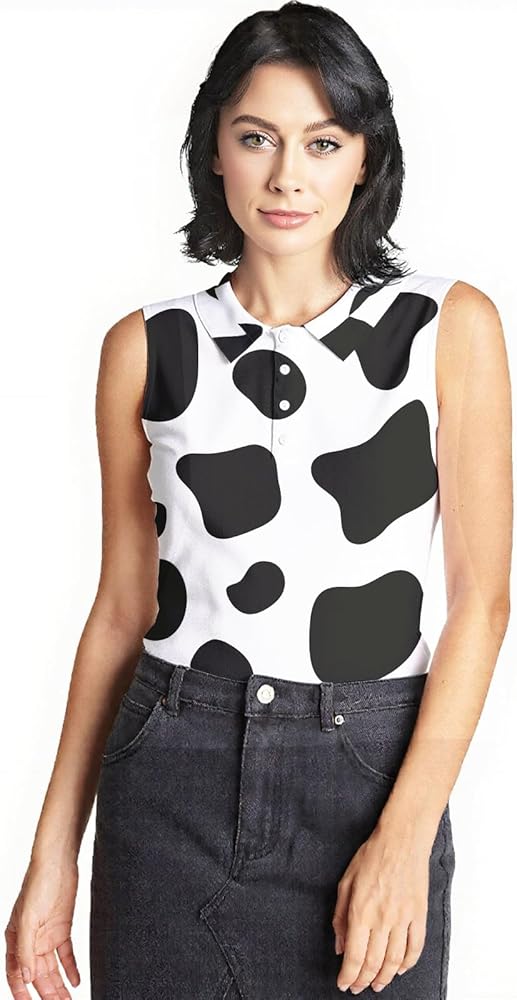 ✫【High-Quality Fabric Golf Shirts For Women】Our Black And White Cow Print sleeveless polo shirt is made of high-quality polyester, which is light and breathable, and the fabric is soft and comfortable to wear: the high-quality fabric makes this garment absorbent and breathable, and it can provide a comfortable wearing experience, making you comfortable all day long.