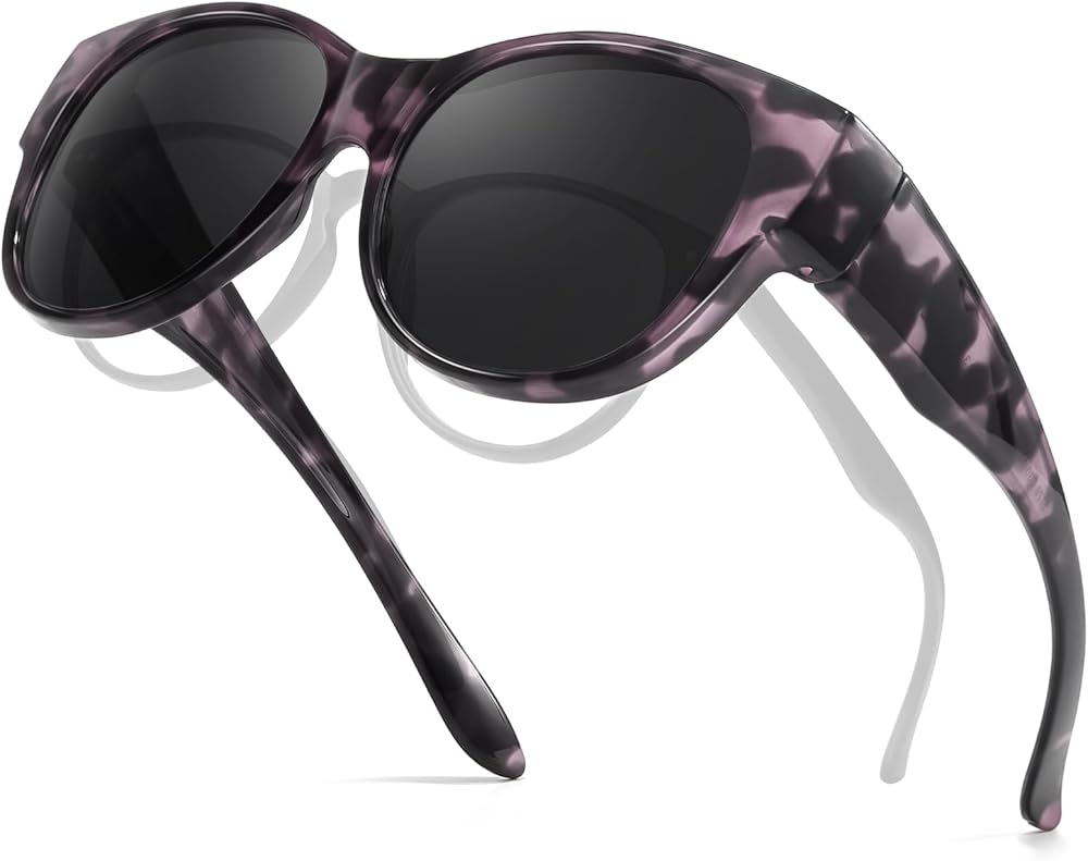 SUNGLASSES OVER GLASSES: These sunglasses are specially designed for women who wear prescription glasses. The large frame wrap nicely around your existing prescription glasses, and it is also suitable for wearing contact lenses or with normal vision alone