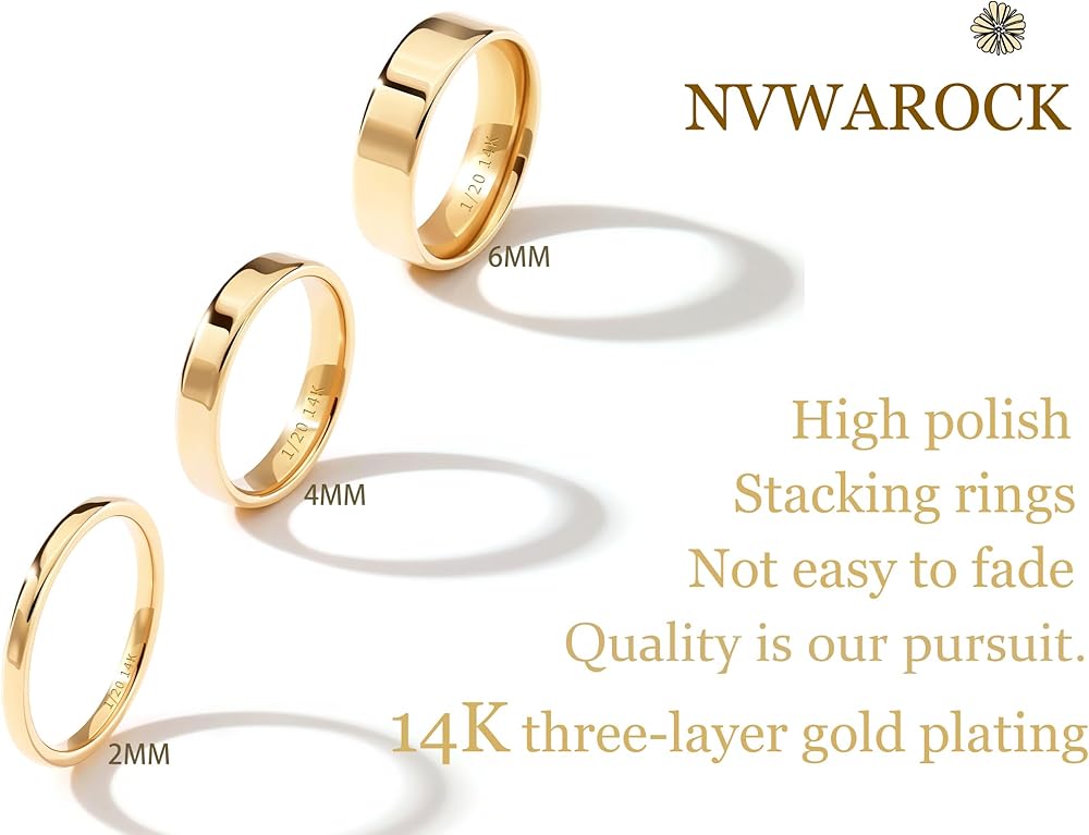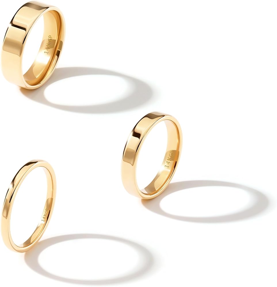 💛 14K GOLD PLATED - These 2mm, 4mm, and 6mm bands feature a high-quality triple-layer gold plating with 3% gold. They're sturdy, lead-free, nickel-free, and hypoallergenic,No discoloration or green fingers.