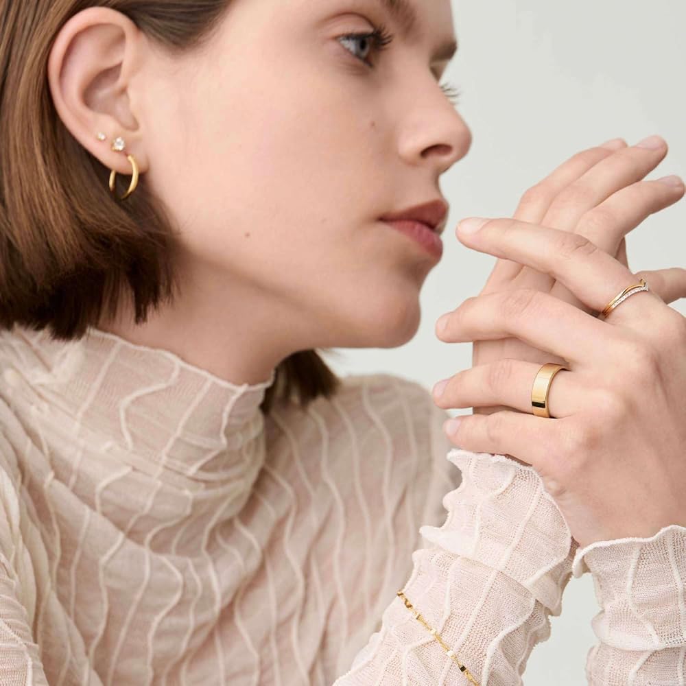 💛 VERSATILE & ELEGANT - Available in multiple sizes—please check before ordering. Wear solo for a minimalist touch or stack with other rings. Perfect as a wedding band, promise ring, engagement ring, thumb ring, pinky ring, and more. A stylish addition to any outfit.