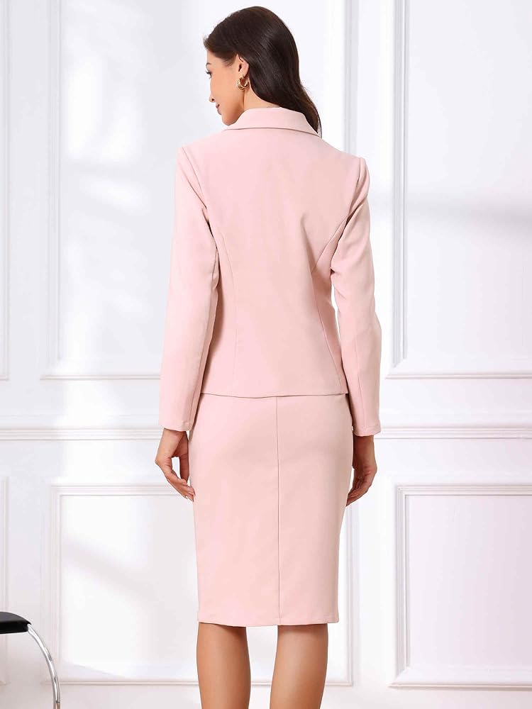 This women's suits 2 pieces set business is made up of several design points: Long Sleeve, Notched Lape, Button-down, Pencil Skirt, Below the Knee, High Waist, Business Outfits