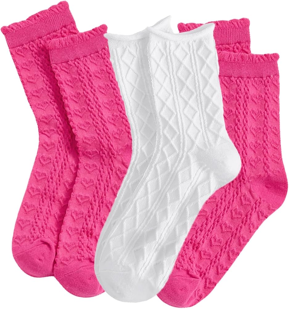 OYOANGLE Women's 3 Pairs Cable Knit Casual Crew Socks Stretchy Solid Simple Socks