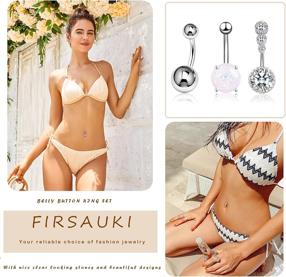 [ CUTE BELLY BUTTON PIERCING JEWELRY ] Cute surgical stainless steel belly button piercing jewelry are the ideal choice for a special occasion or simply looking to add a touch of flair to your everyday look. Navel jewelry go well with bikinis, T-shirt, skirts, jeans, etc, suitable for parties, summer beach, Valentine's Day, Mother's Day, Halloween, Christmas