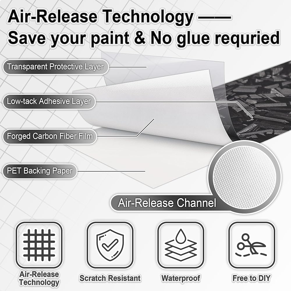 نسيج الكربون الممتاز الممتاز: مصنوع من فينيل الأليفة من فئة السيارات ، يتجمع شريط الكربون اللامع اللامع اللامع بين المتانة مع الانتهاء من اللمعان العالي المذهل. يحاكي الملمس المركب المركب الواقعية الطلاء الألياف الكربونية الفاخرة في جزء صغير من التكلفة ، مما يؤدي على الفور إلى ترقية جماليات سيارتك دون تعديلات باهظة الثمن