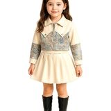 Introducing the exquisite Toddler Leather Jacket and Skirt Set - Fall/Spring/Winter Clothes for Toddler 2pc, a perfect blend of style and warmth for your little girl. This 2pc set includes a Leather Jacket with Bow Peal and a Plated Leather Skirt, making it ideal for Fall/Spring and Winter seasons. The jacket, adorned with a charming bow, ensures your toddler stays both cozy and fashionable during the chilly months. The plated leather skirt adds a touch of elegance, making this outfit a must-have for any toddler girl's wardrobe. Whether it's for Winter Clothes for Toddler Girls or Fall Toddler Girl Clothes, this set offers versatility and durability. The Toddler Leather Jacket and Skirt Set - Fall/Spring/Winter Clothes for Toddler 2pc is designed to keep your little one warm and stylish, perfect for any Fall/Spring Clothes Set for Toddler Outfit or Winter toddler girl outfits. Elevate your toddler's wardrobe with this premium leather set, featuring a Leather Jacket with Bow Peal and a Plated Leather Skirt, ensuring she stands out in every season.