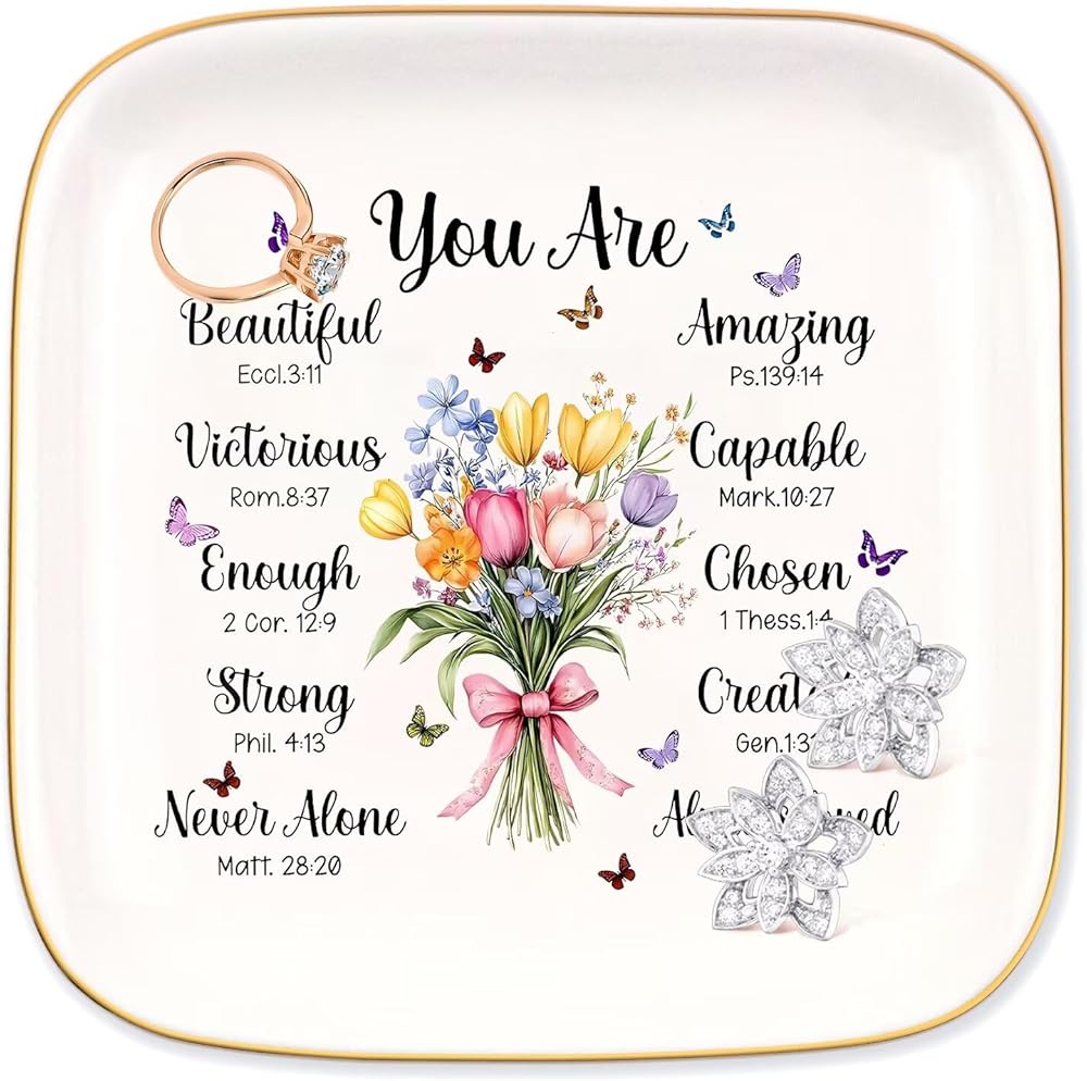 High Quality Jewelry Plates: This jewelry tray is made of high quality glazed ceramic with gold trim for simplicity. The text and motifs are very sturdy and will not wear out even after long term use.