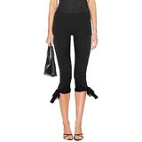 NUFIWI Women Y2k Coquette Capri Skinny Leggings Bowtie Lace Frill Cropped Pants Slim Fit Knee Length Capris Trousers
