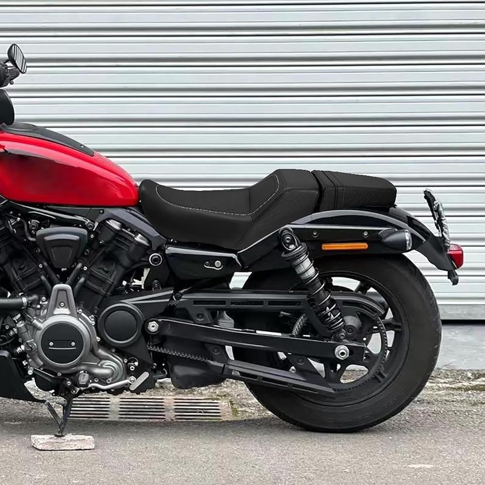 Motorcycle Front Driver Rider Seat Rear Passenger Pillion Seat Cushion Leather One-Piece Seat Fit For Harley Nightster RH975 RH975S 2022-up (Black)