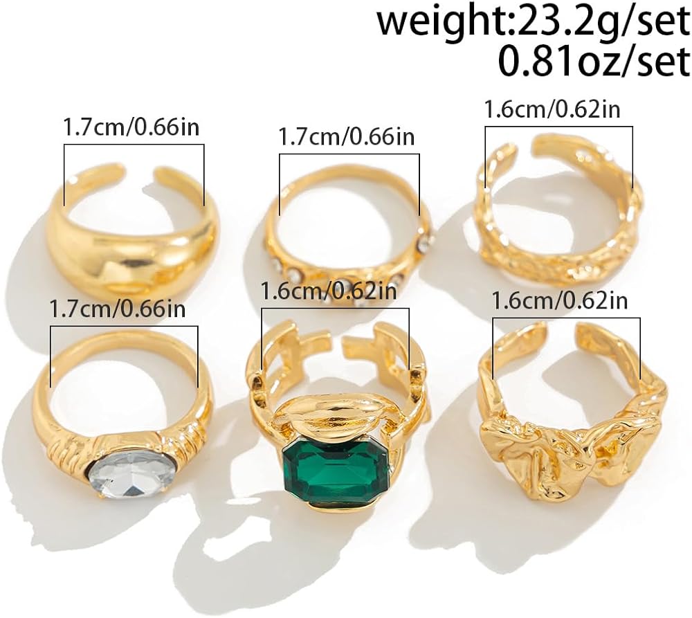 ★ Gemstone Gold Rings★: You'll get a set of 6 statement rings in various styles! Choose from pretty pink, green, and brown gemstone rings, plus dome rings. They're simple yet unique, perfect for any occasion.