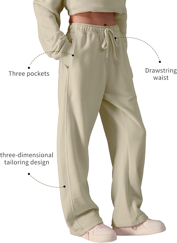Ultra-Soft Washed Fabric: Specially washed for a plush, lived-in feel, these wide leg sweatpants women retain their vibrant colors, making it a durable choice for everyday wear